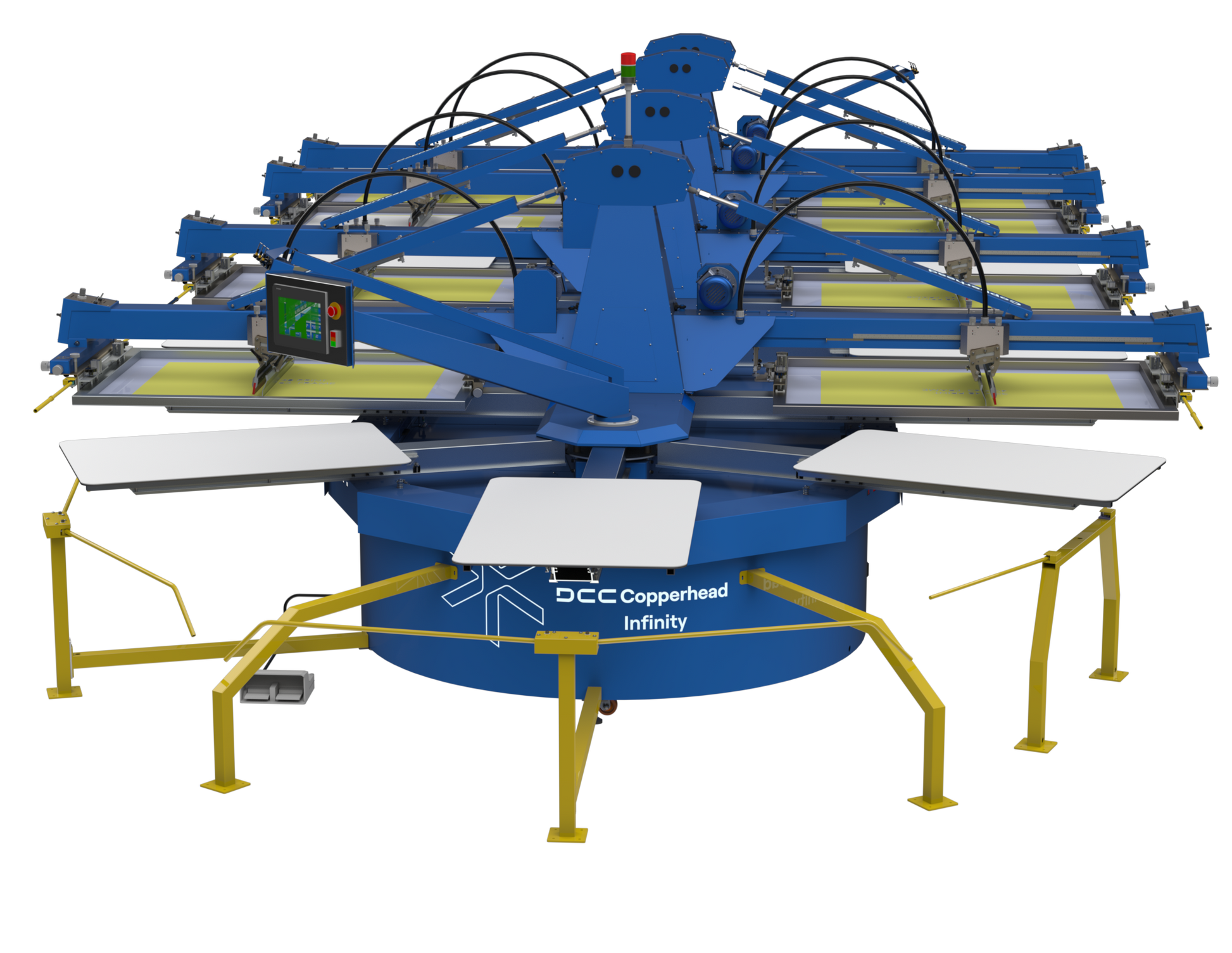 The DCC Copperhead Infinity represents the pinnacle of automatic screen printing technology, combining precision engineering with scalable automation. Ideal for high-volume production environments, it delivers consistent, professional results while helping reduce setup time and operator dependency.